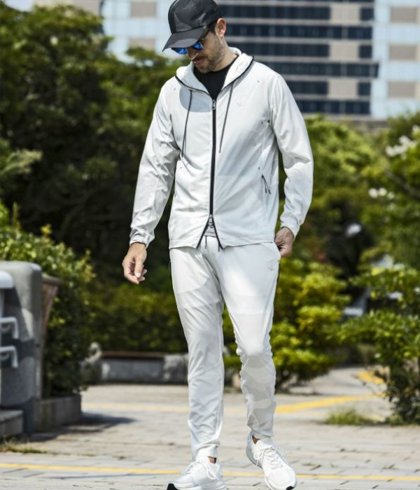 軽量かつ高いストレッチ性でウォーキングやトレーニングなどアクティブなシーンに活躍するセットアップ。
