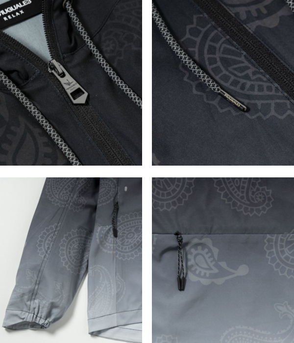 アクティブに適した吸水速乾混率素材を使用しており、大きいカモ柄/ペイズリー柄は着用しやすい程よいグラデーションとなっています。