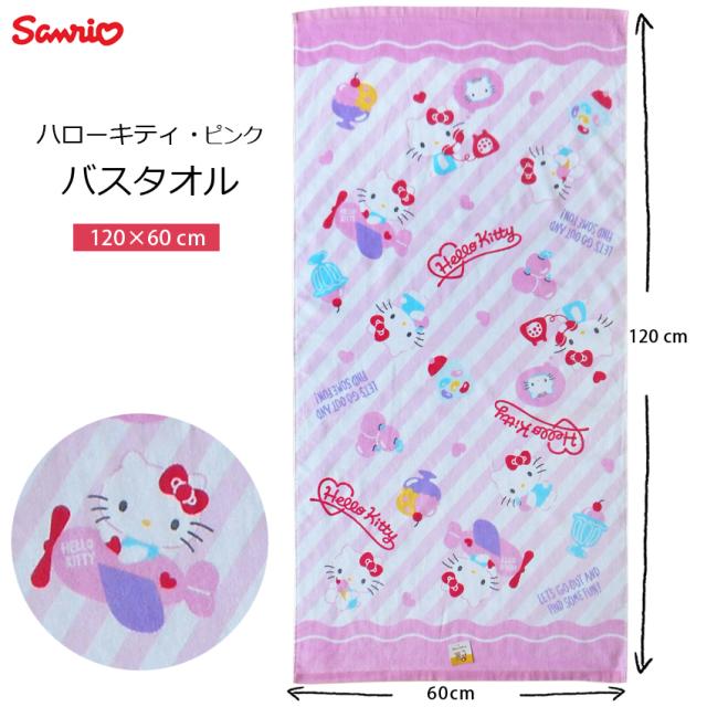 送料無料 バスタオル ハローキティ キティちゃん サンリオ sanrio ピンク ストライプ スイーツ りぼん 昭和 平成 レトロ おしゃれ かわいい おひるね おきがえタオル タオル プール 女の子 懐かし系 幼児 低学年 保育園 幼稚園 かわいい 出産祝 ギフト