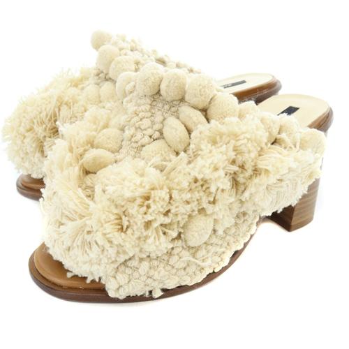 【中古】ザラ ZARA ポンポン サンダル ミュール 35 22-22.5cm べージュ 茶色 ブラウン /SR38 ■SH ■PN レディース