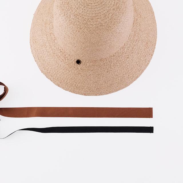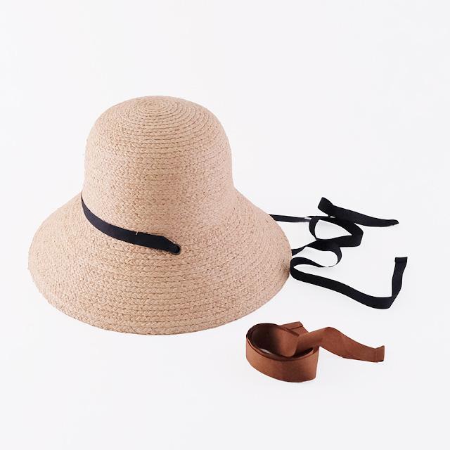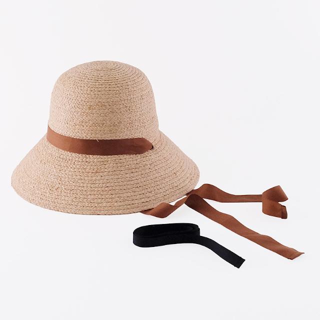 その日のコーディネートに合わせてリボンを付け替えできるラフィアのハットは、
