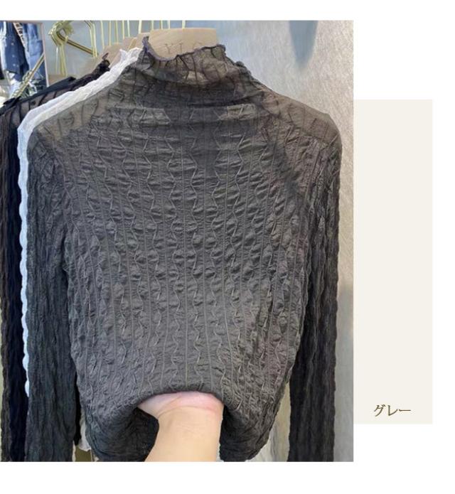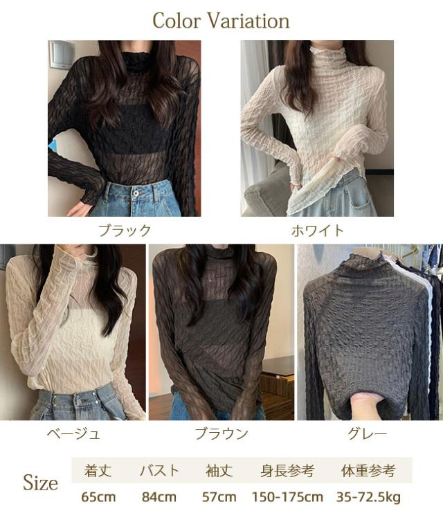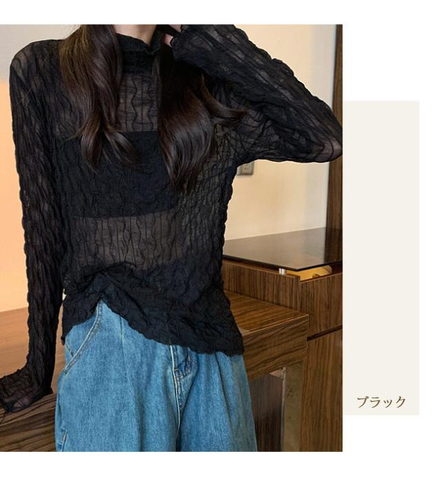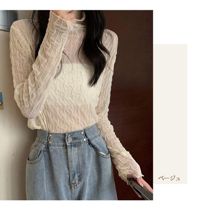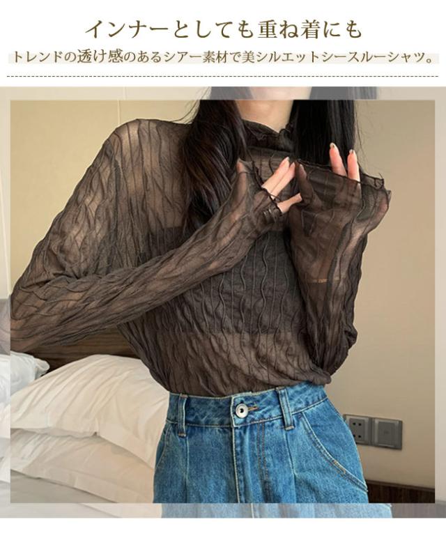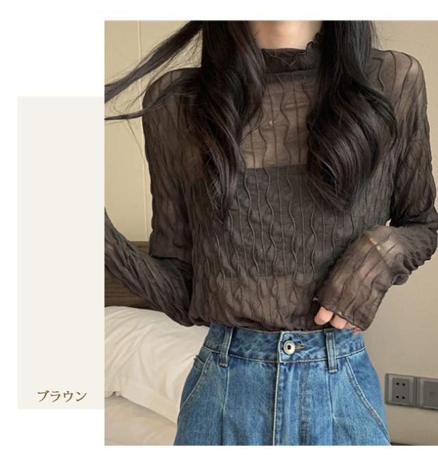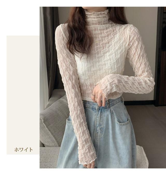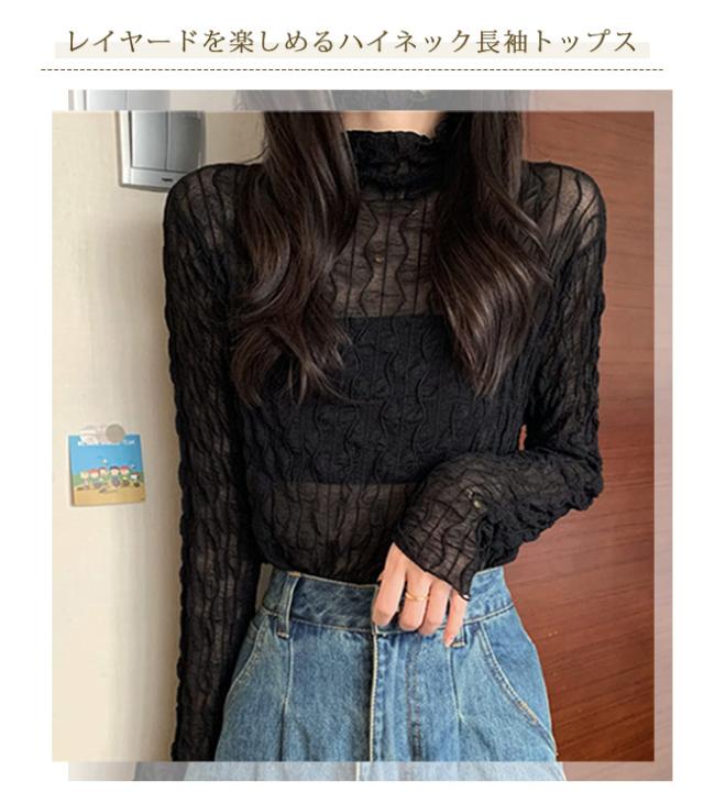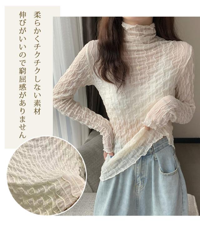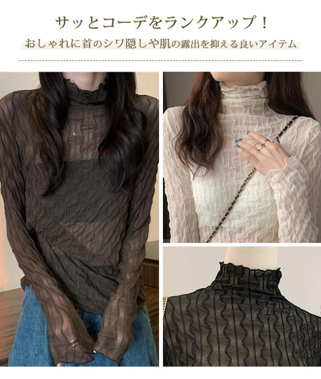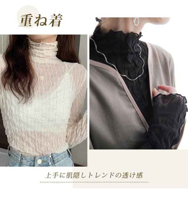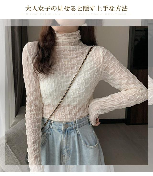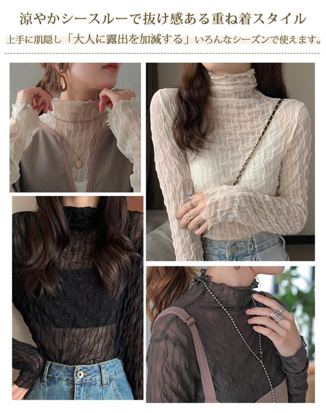 トップス 透け感 シースルー 重ね着 レース インナー レディース 長袖 レイヤード シアー 透け ブラウス おしゃれ タートルネック シアートップス