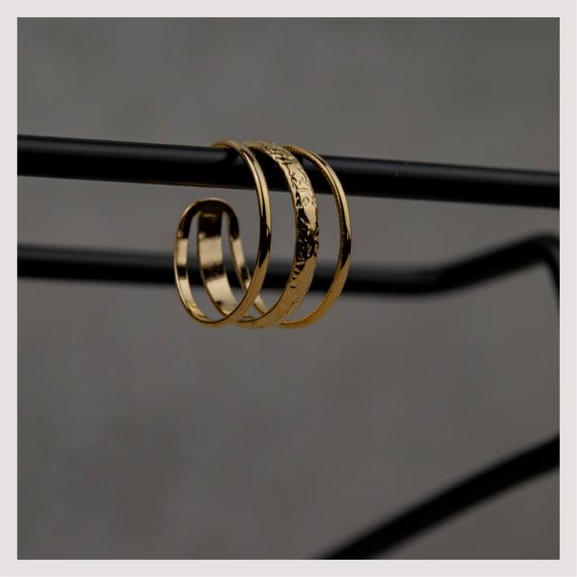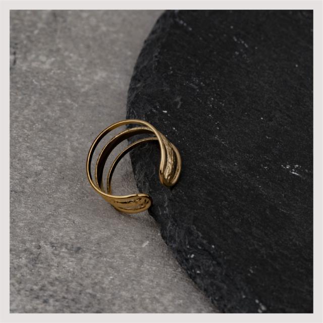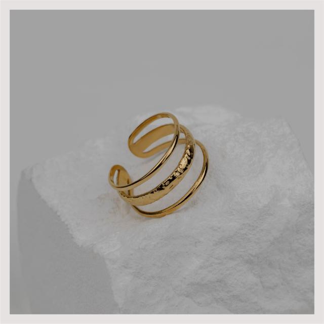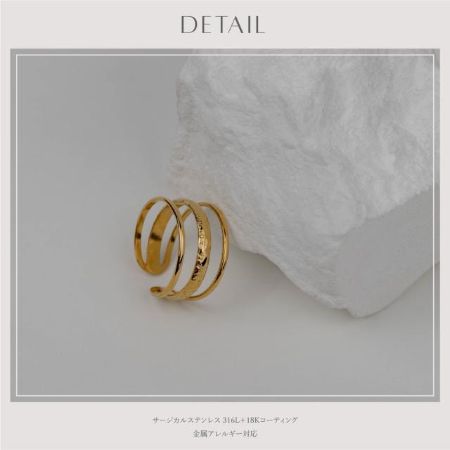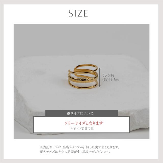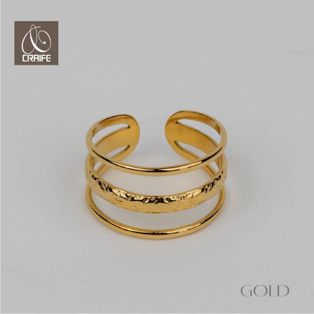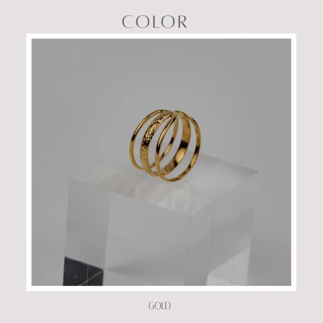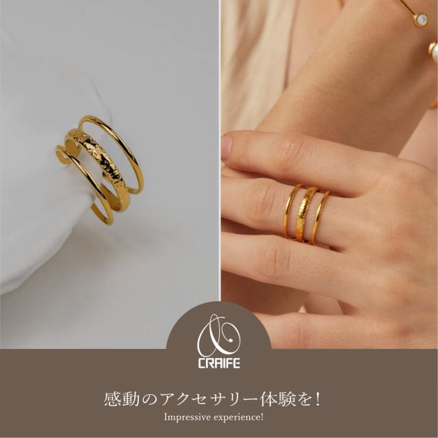 サージカルステンレス リング 指輪 エンボス トリプルライン 金属アレルギー対応 18Kコーティング フリーサイズ レディース 大人 シンプル レディース ゴールド 送料無料 プチプライス高見え CRAIFE