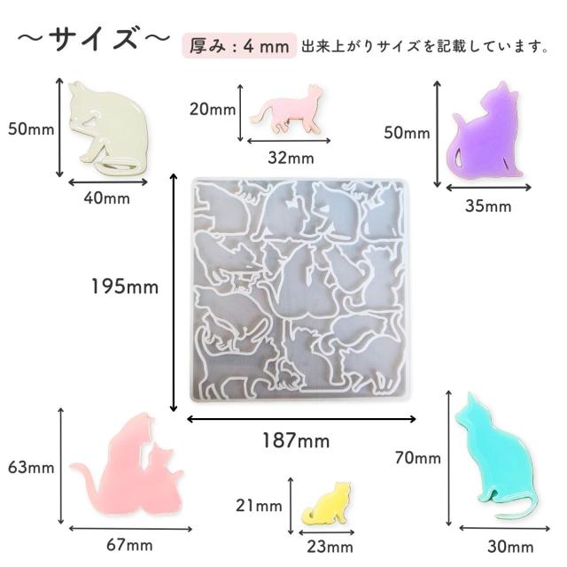 シリコンモールド 猫 レジン シリコン モールド アクセサリー パーツ チャーム キーホルダー 装飾 ハンドメイド クラフト用 型枠