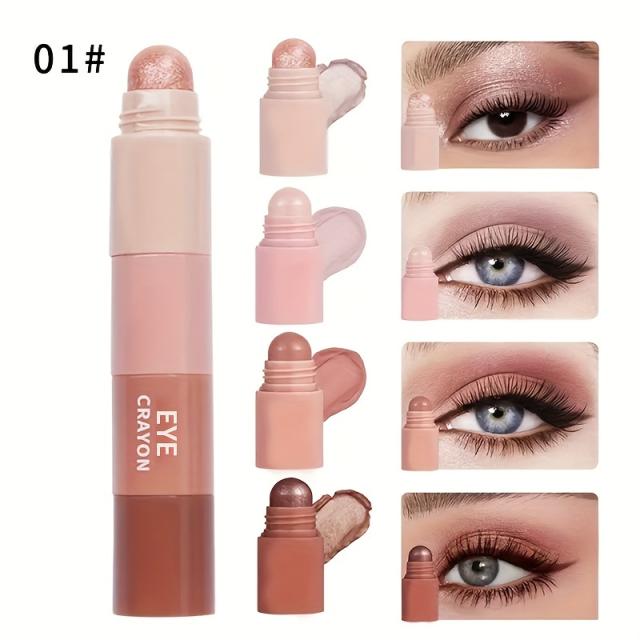 4-in-1 バレットアイシャドウスティック - マット&シマーシェード、ブラウン、ゴールデン、ミックスカラー - アイライナー&ハイライト用マルチユース、携帯用トラベルサイズ