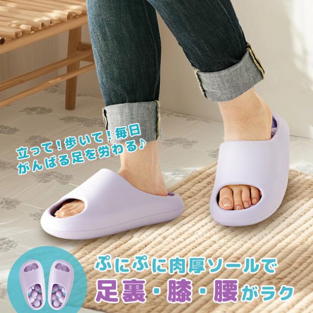 腰らくルームサンダル パープル(健康サンダル レディース 健康サンダル室内 足裏 マッサージ 室内履き オフィス 室内履きサンダル 大人 蒸れない 職場 会社 EVA サンダル evaサンダ おしゃれ)