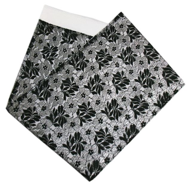 帯揚げ 帯上げ 二重 レース 銀糸入り 花柄地模様 白地銀黒 日本製 振袖 成人式 帯あげ 振袖用 着物 小紋 洗える着物 きもの 和装 白色 銀色 黒色 2重