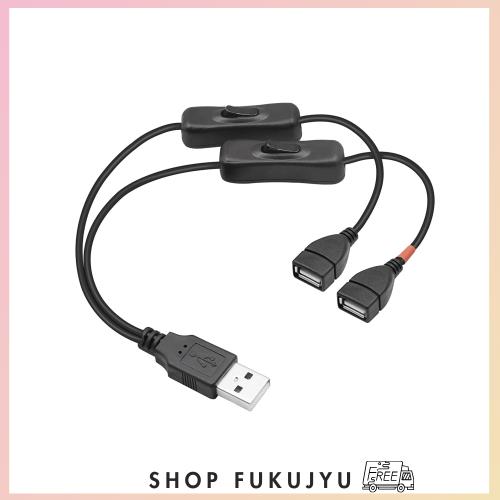 ?【製品仕様】USB 延長ケーブル 2分岐二股コード オン/オフスイッチ付き、全長約30cmです。