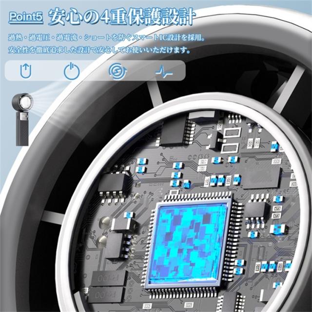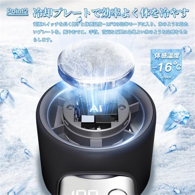 - 自由自在に使えます。4000mAhの大容量バッテリーで長時間使えて安心。冷却プレートのおかげで瞬間的にひんやり涼しくなり、猛暑のアウトドアや通勤に大活躍しています。