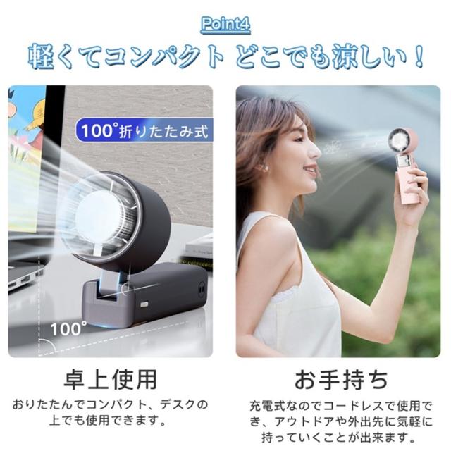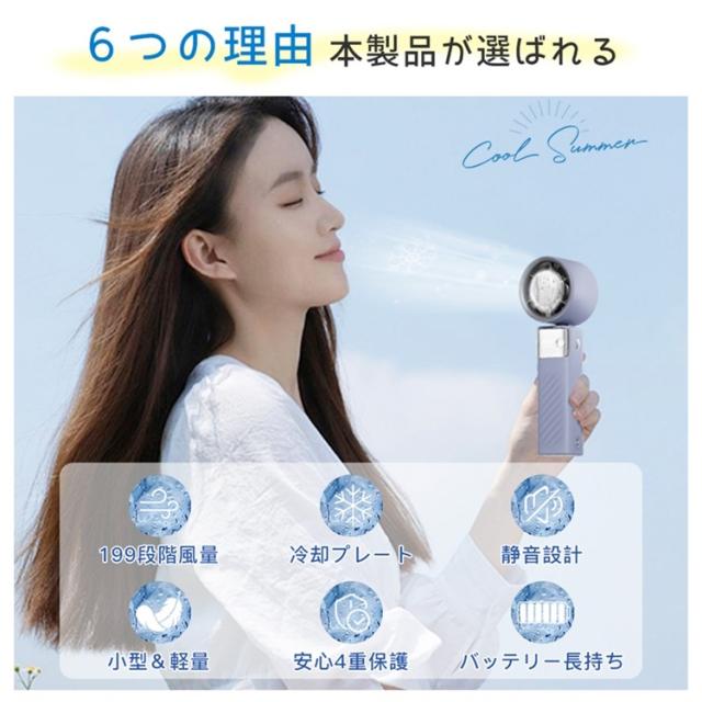 【冷却プレート 199段階 4000mAh】ハンディ扇風機 ハンディファン 携帯扇風機 扇風機 手持ち 首かけ 卓上 折りたたみ 強風 大風量 爆風 瞬間冷感 静音 小型 軽量 かわいい 熱中症対策 猛暑対策 涼しい アウトドア ファン 母の日 父の日