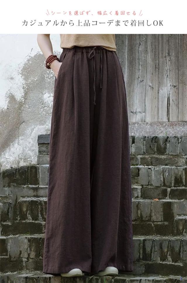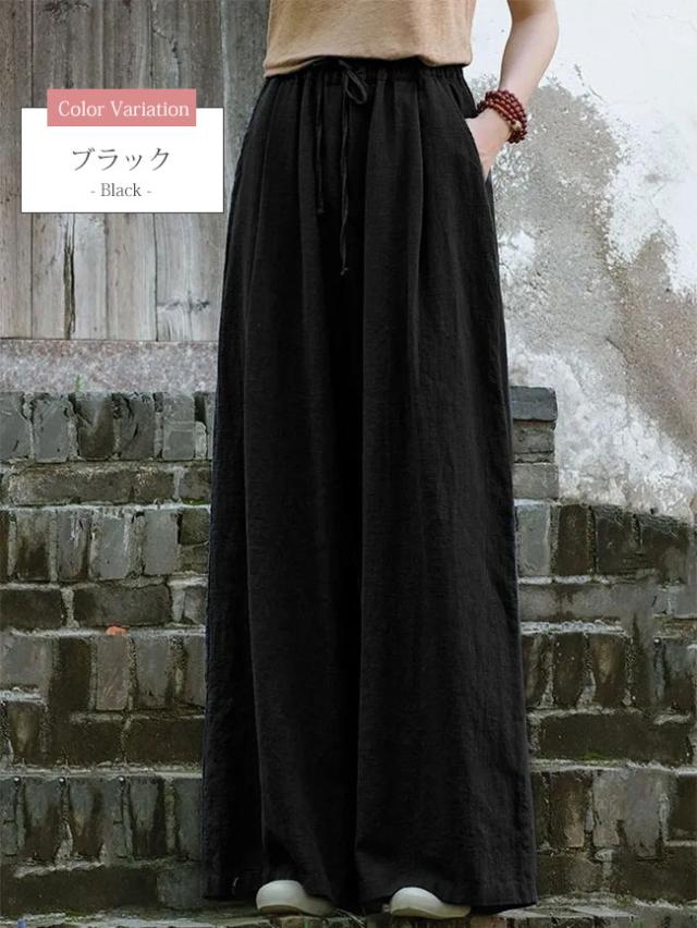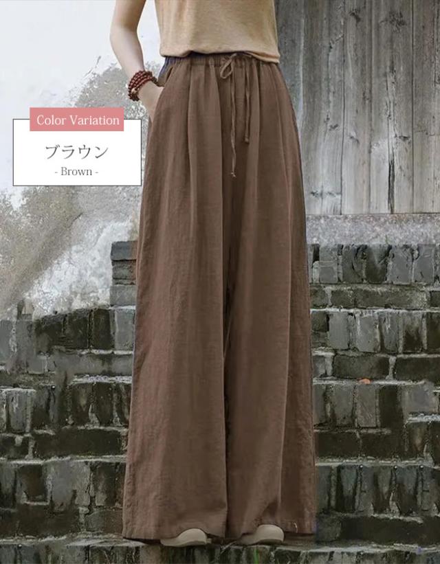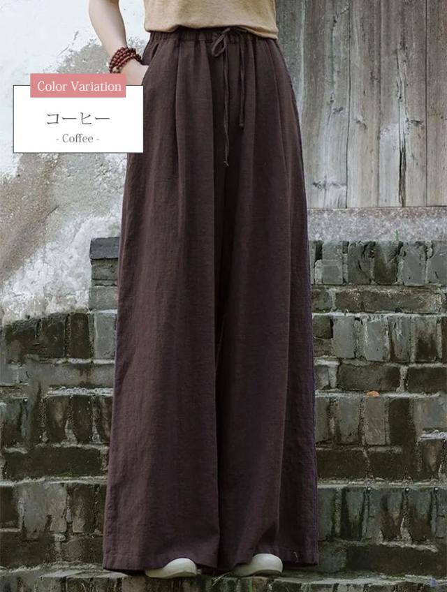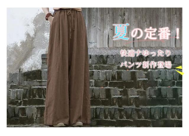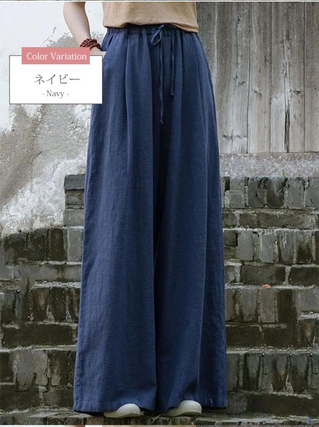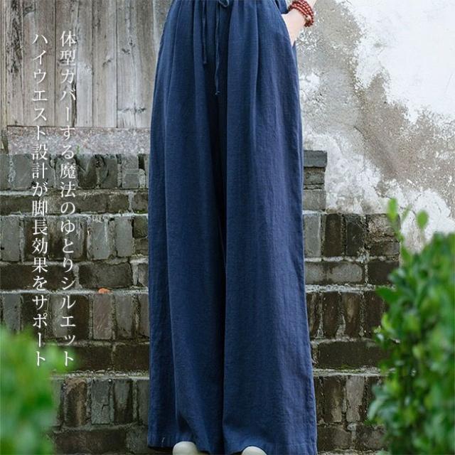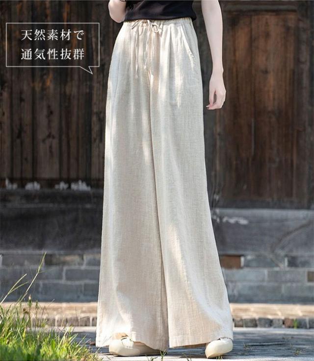 新作 プレミアム リネン ワイドパンツ レディース ゆったり ボヘミアン レトロ ドレープ感 春夏 カジュアル