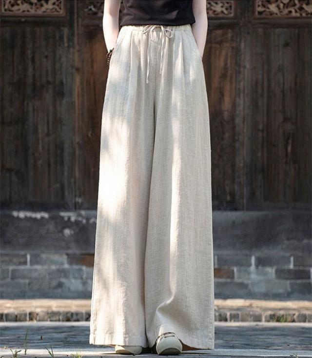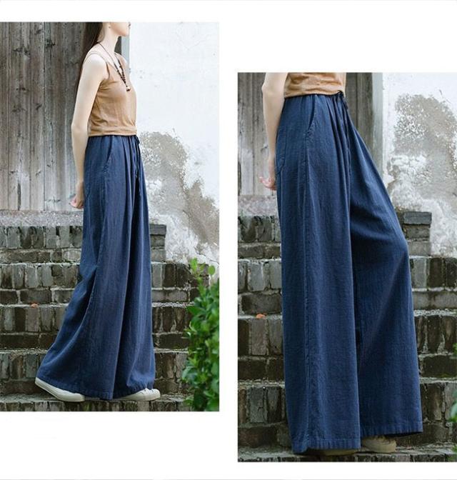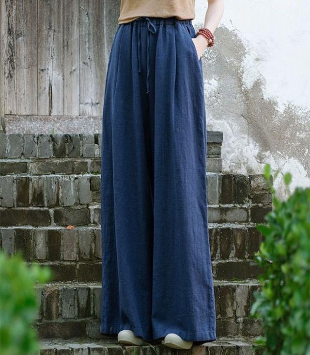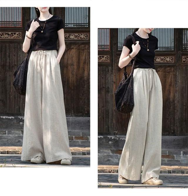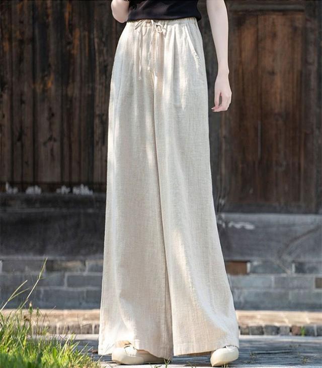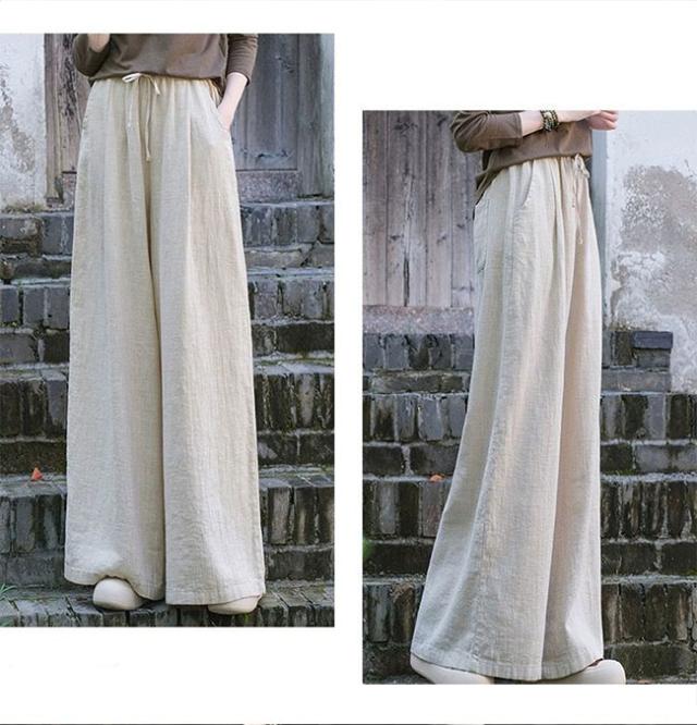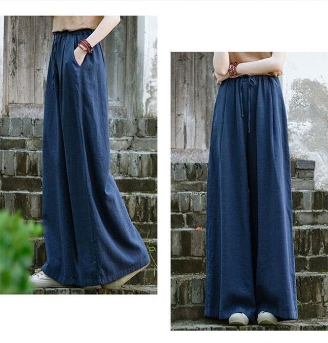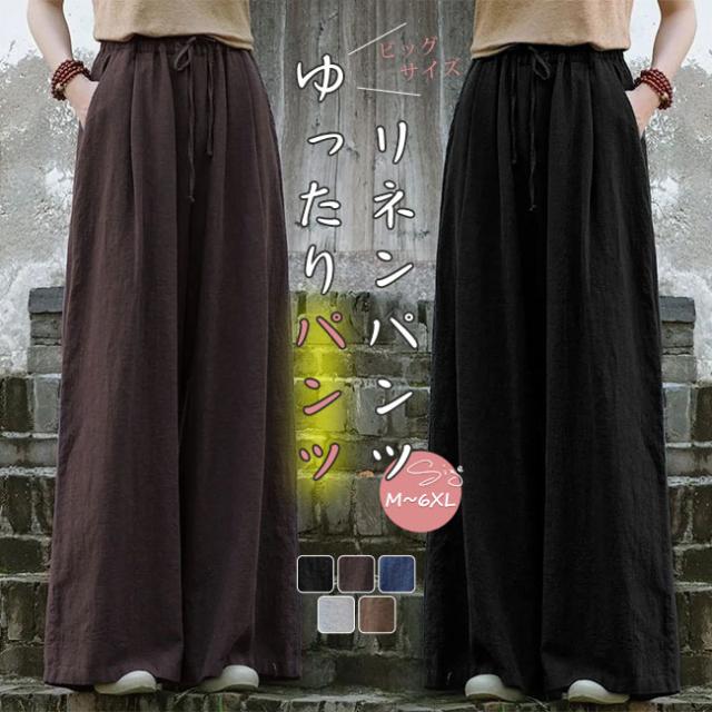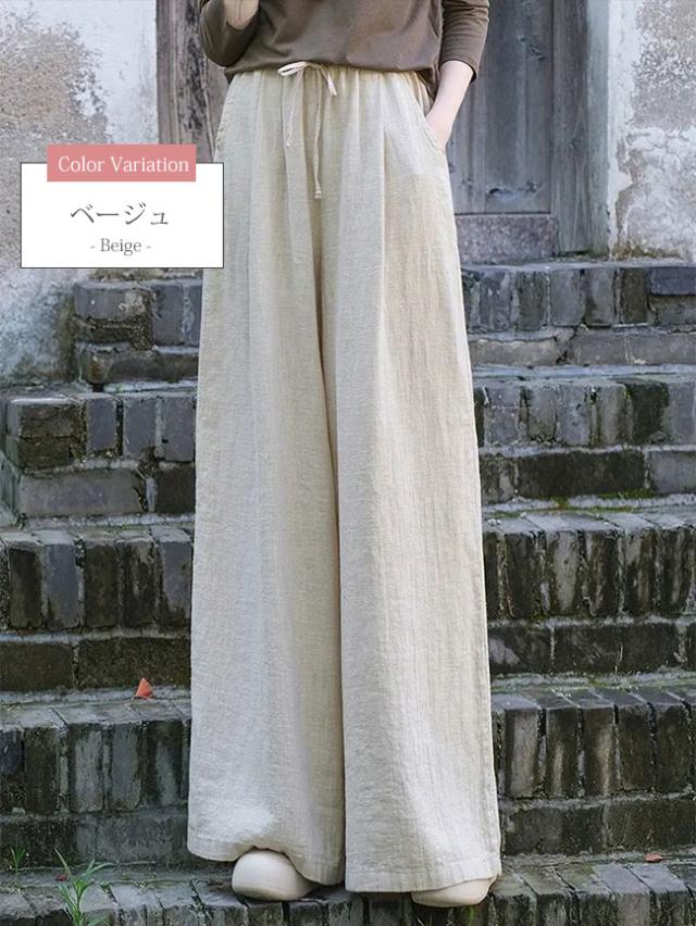 新作 プレミアム リネン ワイドパンツ レディース ゆったり ボヘミアン レトロ ドレープ感 春夏 カジュアル