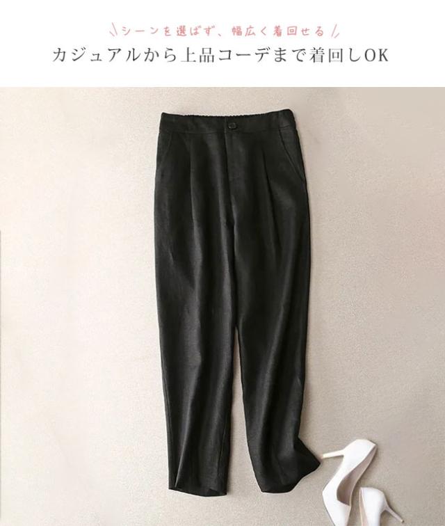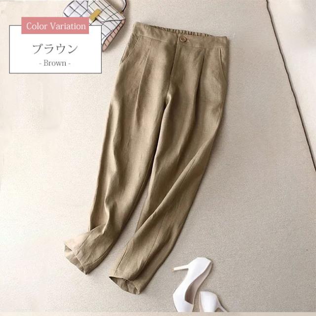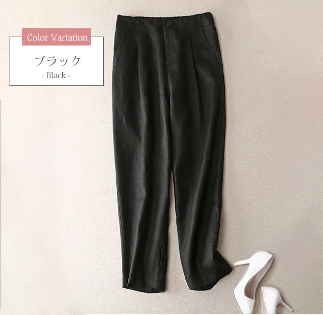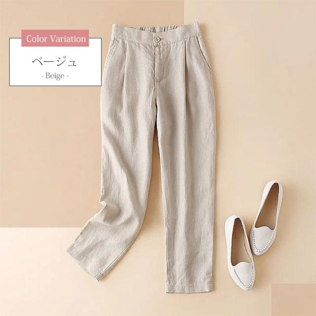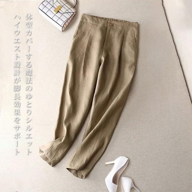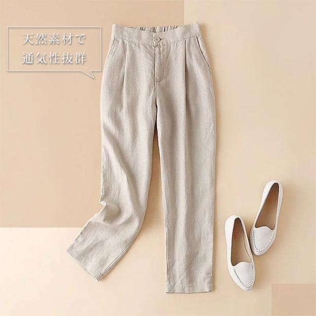 高品質 リネン ハーレムパンツ レディース 夏物 薄手 涼感 ハイウエスト ゆったり ドレープ感 アンクル ストレート
