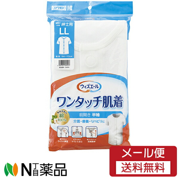【メール便送料無料】川本産業 カワモト ウィズエール ワンタッチ肌着 半袖紳士 LLサイズ 1枚入<前開き><綿100%><介護・療養・リハビリに>