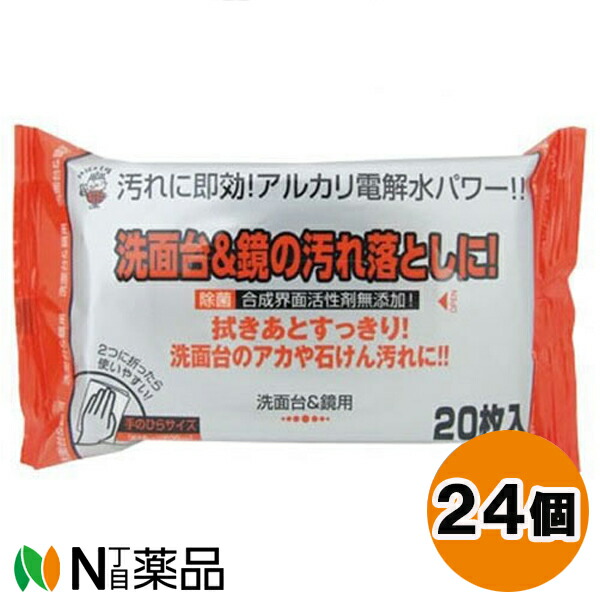 服部製紙 洗面台&鏡用クリーナー (20枚入) 24個セット <汚れに即効!アルカリ電解水パワー!!洗面台や鏡の汚れ落としに>