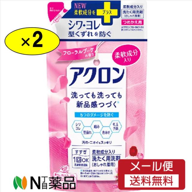 【メール便送料無料】ライオン アクロン おしゃれ着洗剤 フローラルブーケの香り 詰め替え380ml×2袋セット<洗濯洗剤 おしゃれ着洗い>