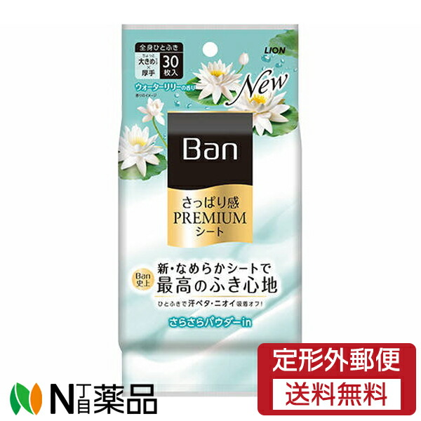 【定形外郵便】ライオン Ban(バン) さっぱり感PREMIUMシート さらさらパウダーinタイプ ウォーターリリ—の香り (30枚入) <汗 ニオイ デオトラントシート>