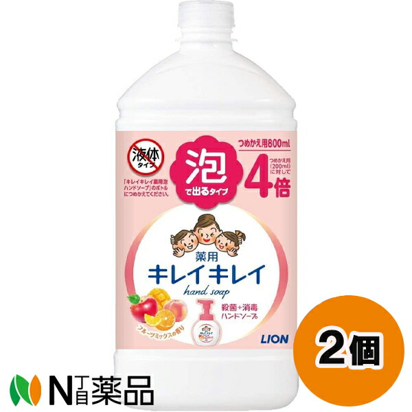 ライオン キレイキレイ 薬用泡ハンドソープ フルーツミックスの香り つめかえ用 特大サイズ (800ml) 2個セット <ハンドソープ 殺菌 消毒 泡タイプ>【医薬部外品】
