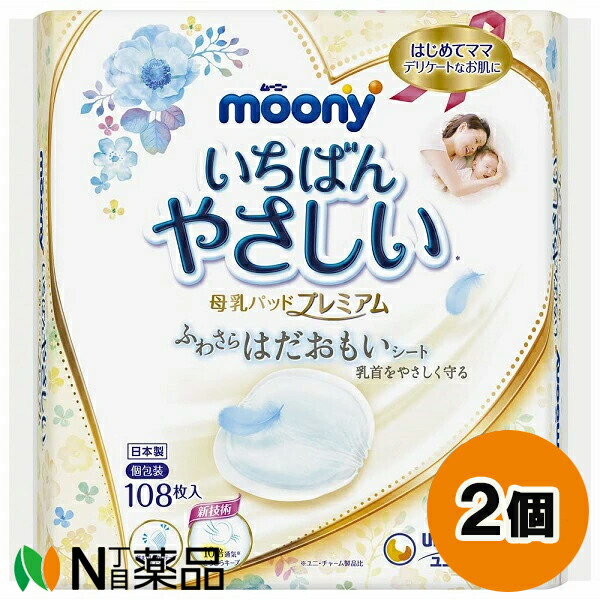ユニ・チャーム moony(ムーニー) いちばんやさしい 母乳パッド プレミアム (108枚入) 2個セット <デリケートなお肌に ふわさらはだおもいシート>【送料無料】