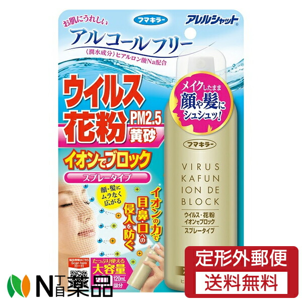 【定形外郵便】フマキラー アレルシャット ウイルス 花粉 イオンでブロック スプレータイプ (120ml) 約300回分 <アルコールフリー PM2.5 黄砂>
