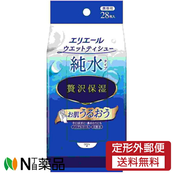 【定形外郵便】大王製紙 エリエール ウエットティシュー 純水タイプ 贅沢保湿 携帯用 (28枚入) 1個 <ウェットティッシュ ノンアルコール 乾燥が気になる時 お化粧のヨレを直したい時に>