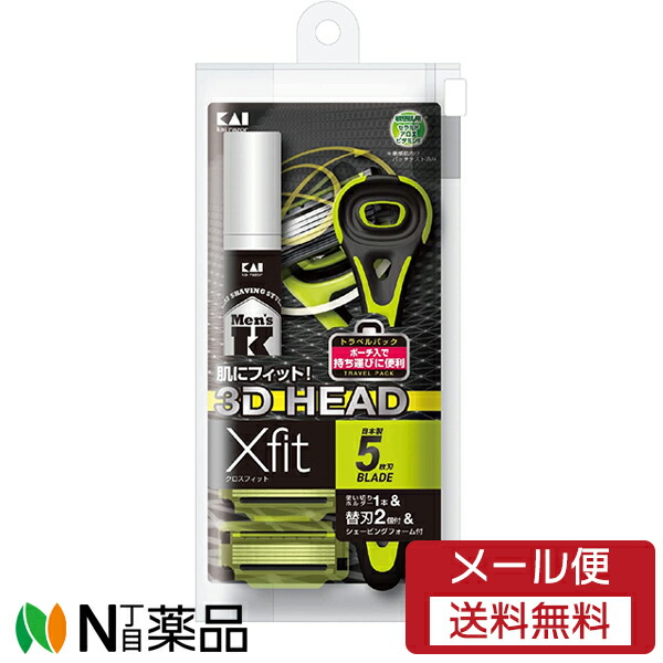 【メール便送料無料】貝印 Xfit(クロスフィット) トラベルパック[GA0042](ホルダー1本 替刃2個付き ミニサイズのシェービングフォーム)<やさしい剃り心地 5枚刃 カミソリ>