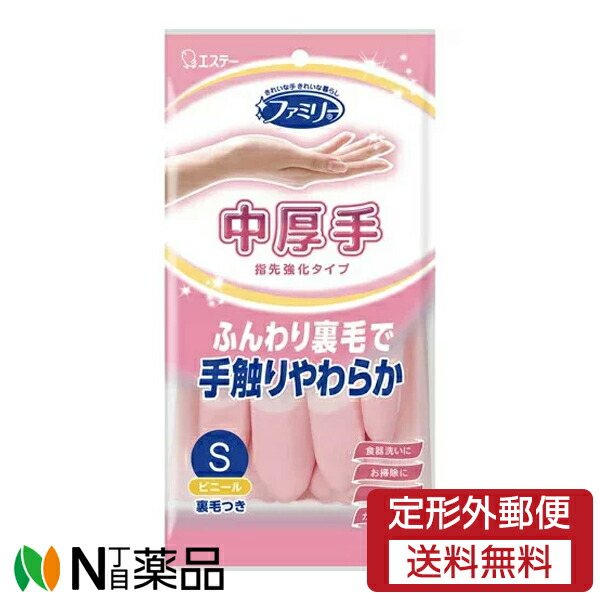 【定形外郵便】エステー ファミリー ビニール 手袋 中厚手 指先強化 Sサイズ ピンク 1個<家庭用 ビニール手袋 ゴム手袋 裏毛つき>