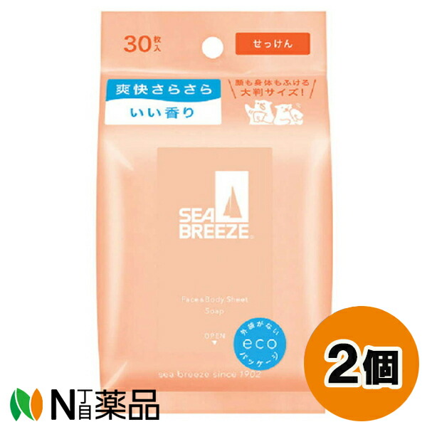 ファイントゥデイ 資生堂 SEA BREEZE(シーブリーズ) フェイス&ボディシート N せっけん (30枚入) 2個セット <制汗シート 汗臭ケア>【小型】