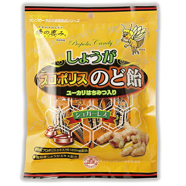 サンフローラ 蜂の恵み しょうがプロポリスのど飴 80g入×25袋セット<ブラジル産プロポリス+ブラジル産ユーカリはち蜜><シュガーレス>