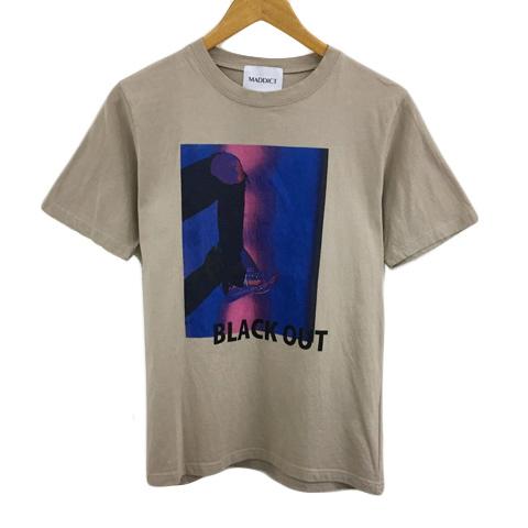 【中古】マディクト MADDICT Tシャツ プルオーバー クルーネック プリント ロゴ 半袖 S ベージュ 青 ブルー メンズ