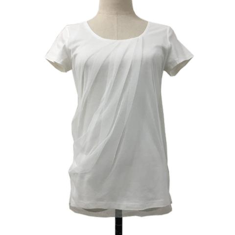 【中古】アイシービー カットソー プルオーバー ラウンドネック ドレープ 切替 チュール 無地 半袖 S 白 ホワイト
