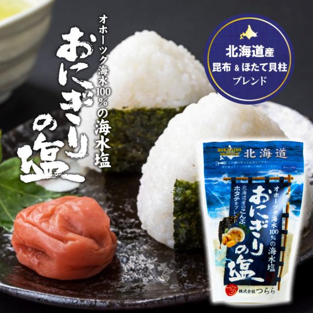 北海道オホーツク海水100%の海水塩 おにぎりの塩 北海道産こんぶ ホタテ ブレンド つらら【メール便対応可能・メール便時4個まで】