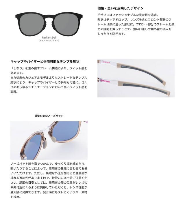 見た目だけでなく、スウィングでズレないフィット感を実現するテンプル構造など、こだわりが詰め込まれています。