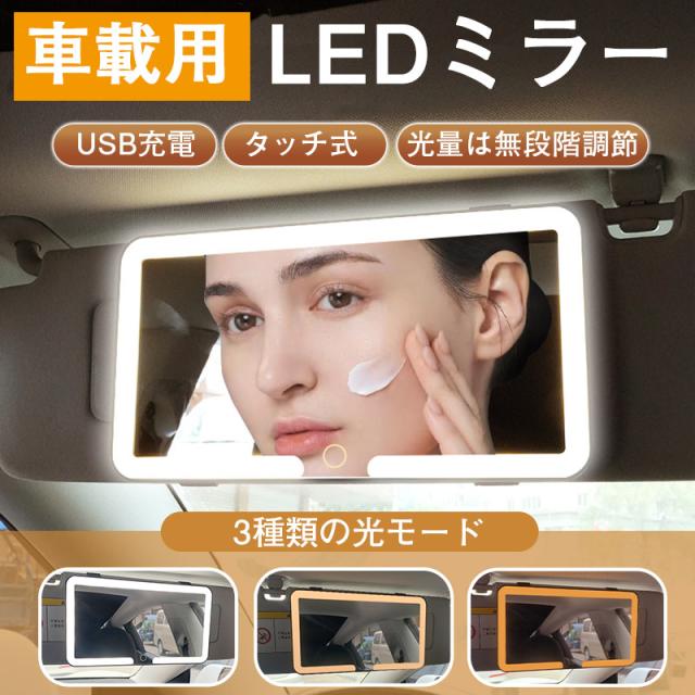 LEDミラー 車用 車載用 鏡 サンバイザーミラー 女優ミラー 化粧鏡 USB充電 化粧車載鏡 自動車用品 化粧車載鏡 LEDミラー 助手席