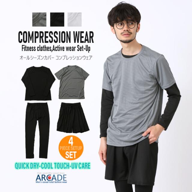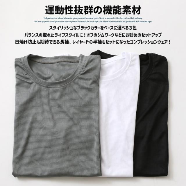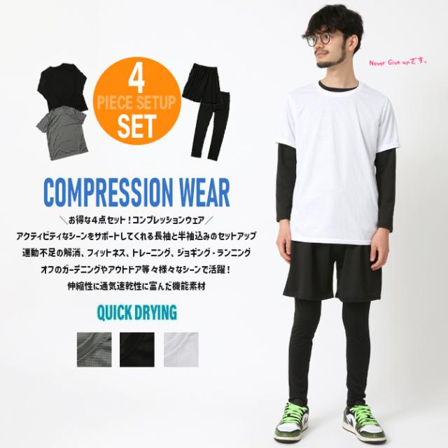 コンプレッション ウエア 4点セット メンズ 半袖Tシャツ 長袖カットソー フルレングス レギンス ハーフパンツ