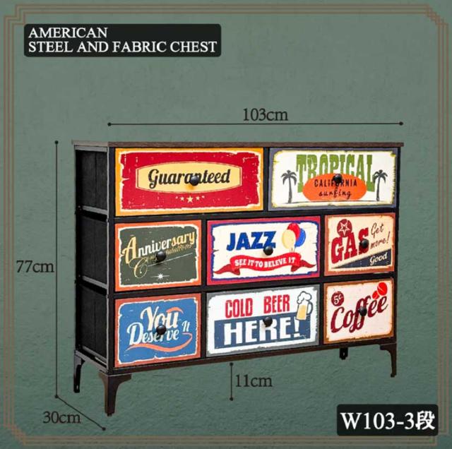 | 品名 | American Steel And Fabric Chest チェスト W103 3段 |