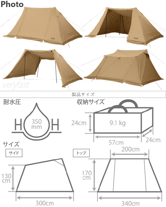 Is your solo soul WOWWOW?何も我慢しないわがままなソロキャンプを。ソロキャンプをしていて「あ、今最高だなー」と思うときそれはYeah!などではなく「WOWWOW」くらいではないでしょうか。ソロソウルウォウウォウはそんなWOWWOWを発生しやすくするためのソロキャンプ用シェルターです。■カラー:タン■組立サイズ(外寸)約W340×D300×H170cm■収納サイズ約W57×D24×H24cm■総重量約9.1kg■材質:ポリコットン(ポリエステル65%、綿35%)、アルミ合金■最低耐水圧350mm■セット内容:テント生地、ポール(長)×2本、ポール(短)×2本、ロープ×5本、コンプレッションベルト、ペグ×15本、キャリーバッグ※本製品に使用されているポリコットン生地は防水コーティングされたポリエステル生地等とは異なり水分を吸収した際に綿素材が膨張し雨漏りを防ぐ構造です。そのため張り方が弱い時や長時間の雨に濡れた際には内部に雨漏りする場合があります。また濡れたまま保管をすると化学繊維に比べてカビが生じやすいためご注意下さい。