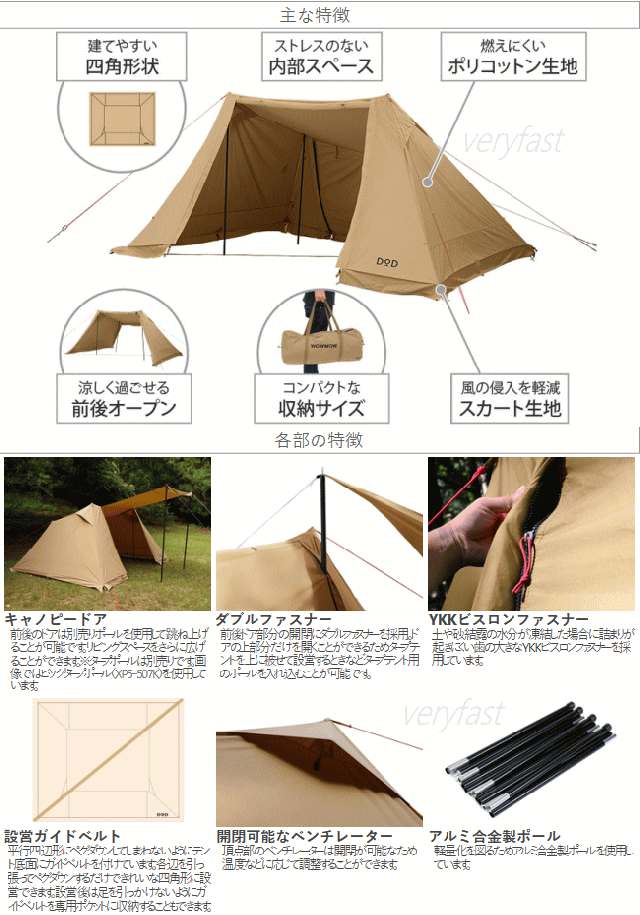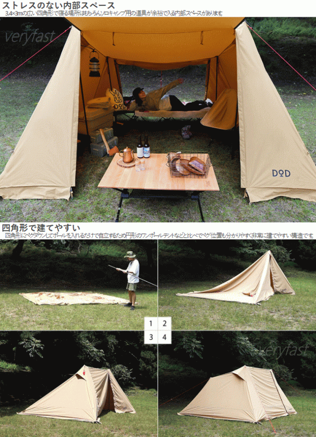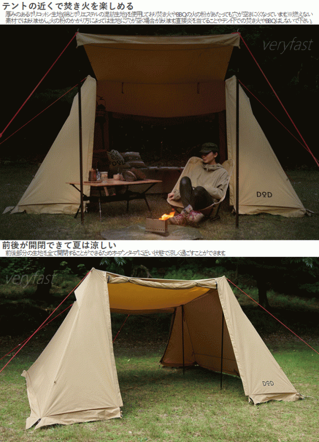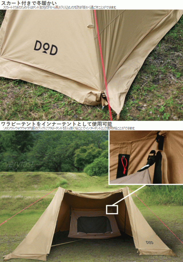 DOD シェルター ソロキャンプ ポリコットン生地 ソロキャンプ用シェルター 四角形 建てやすい スカート付き アウトドア キャンプ ソロソウルウォウウォウ TT2-734-TN タン