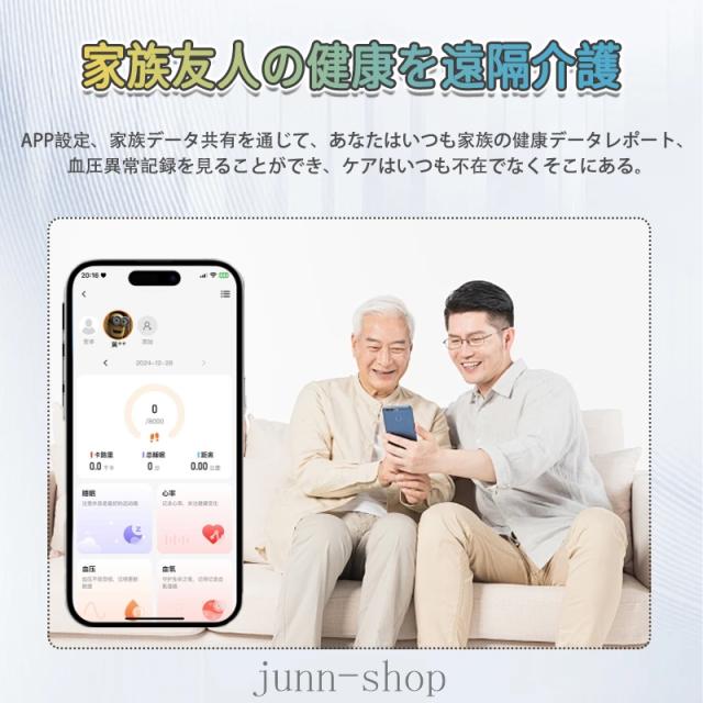 体温、血中酸素、血圧や心拍数などの測定機能を一瞬で確認でき、スマホと同期した後アプリで健康状態データを一目で分かります。