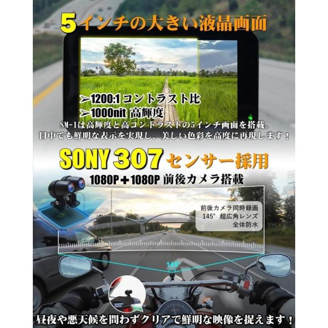 バイクドライブレコーダーは、前後カメラともに1080PフルHD解像度のカメラを搭載し、バイクライダーのために設計されました。145°超広角6層光学ガラスレンズを採用し、日中や夜間、難しい気象条件下でもクリアで鮮明な映像をキャプチャします。【前後カメラ同時表示】しかも前後カメラ同時表示可能のため、前後の状況を同時に記録し、運転中の安心感を向上させます。また、前後カメラの映像を同時に表示したり、単独で表示したりすることができるため、状況に応じて選択肢が広がります。