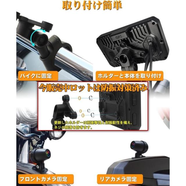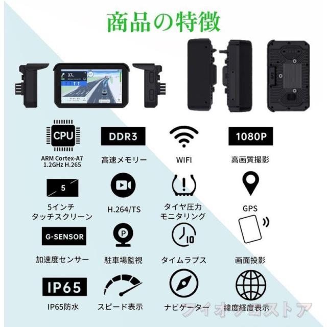 【2024新登場 Carplay対応のバイク用ドラレコ】バイク用 スマート ドライブレコーダー 5インチ液晶モニター 全体防水防塵 防水前後カメラ バイク用ナビ