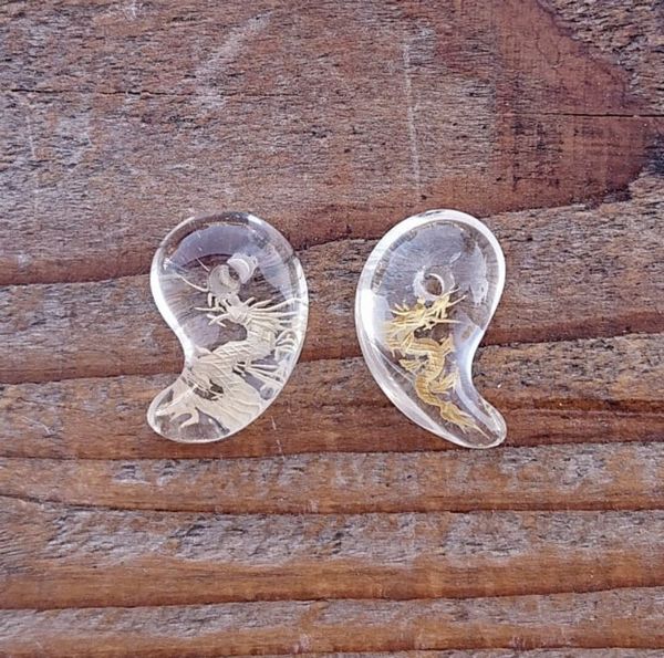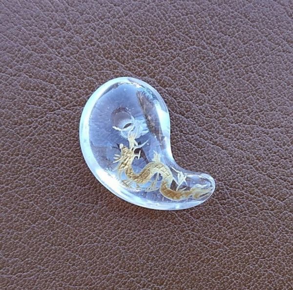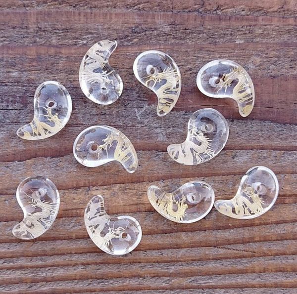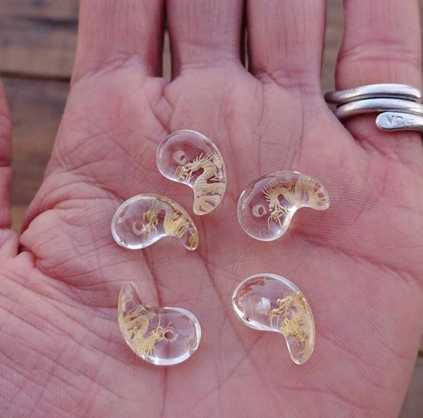 ビーズ アクセサリー用品 アクセサリー道具 材料 手芸 ハンドクラフト 楽器 コレクション 勾玉 天然水晶 龍彫り 18mm 金色仕上げ 水晶 【送料無料】
