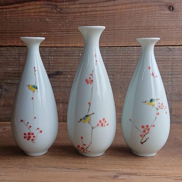 | 淡い淡いグリーンに 梅の花と色鮮やかな鳥が映える 一輪挿し 陶磁器の産地として歴史ある、中国は【龍泉】の青磁 絵付けは全て手描きのため、一つとして同じものはございません 一輪挿しとしても そのままでインテリアとしてもお使いいただけます 雰囲気はありながらも 主張し過ぎず さりげない雰囲気作りにオススメです 【要確認】 手作りのため、大きさ、形、共に個体差がございます。 絵付けは全て手描きのため、一つとして同じものはございません。 撮影時の光加減や液晶の環境により、色目が実物と多少異なる場合がございます。 比較のため複数個の画像を載せておりますが、表示価格は1個のお値段となっております。(選択不可) |