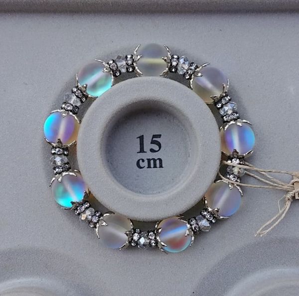 | 【エスペクトロ】 特殊加工を施し、偏光フィルムを挟み込んだガラスビーズ。 光の反射をお楽しみください。 こちら エスペクトロをアクセントに、ラインストーン、アクリルビーズ、メタルパーツを使用したオリジナルブレスレットとなっております。 【要確認】 撮影時の光加減や液晶の環境により、色目が実物と多少異なる場合がございます。 |