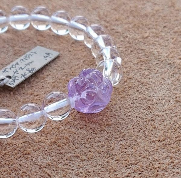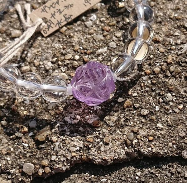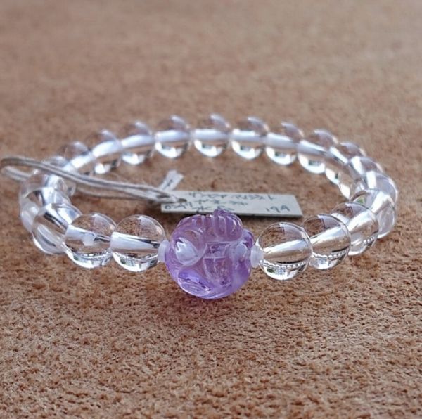ブレスレット レディースアクセサリー アクセサリー ファッション ガネーシャ ザンビア産アメジスト 水晶 クリア仕上げ ビーズ 手彫り 【送料無料】