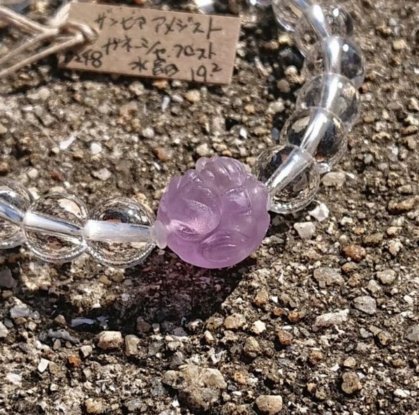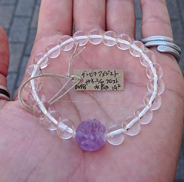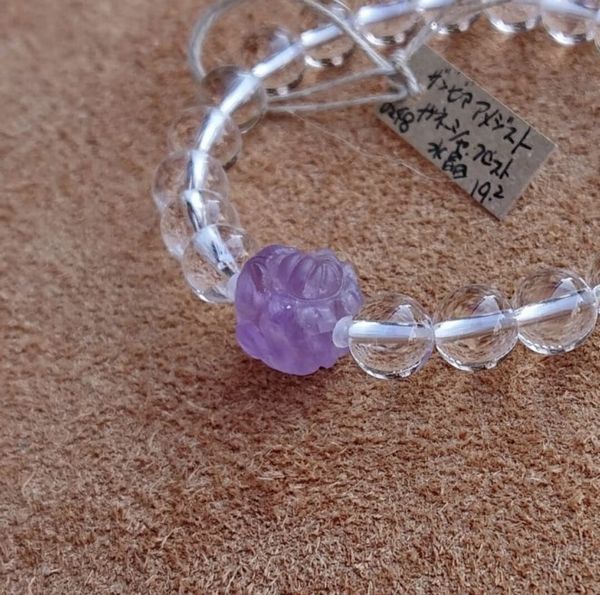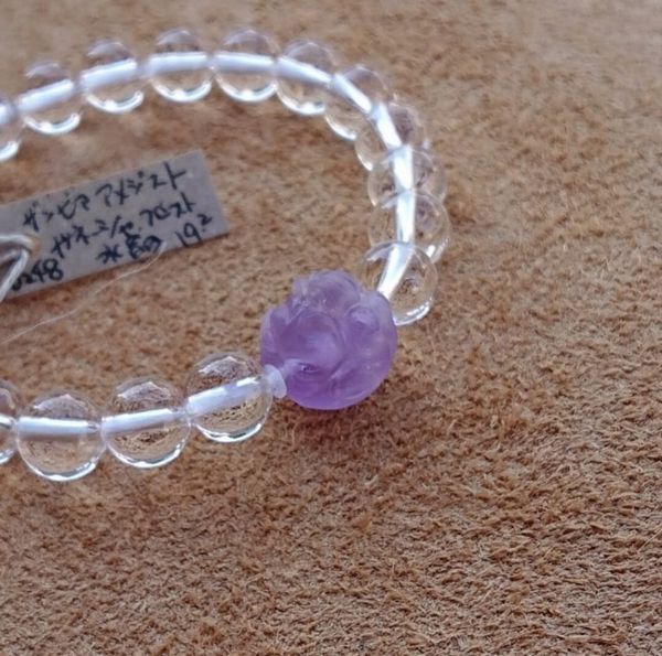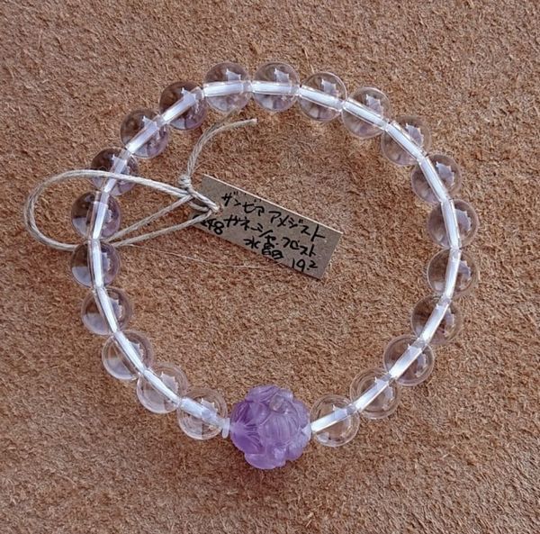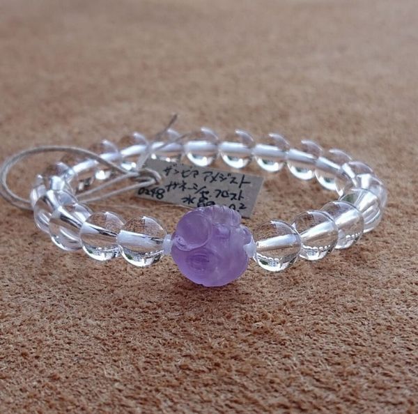 ブレスレット レディースアクセサリー アクセサリー ファッション ガネーシャ ザンビア産アメジスト 水晶 フロスト仕上げ ビーズ 手彫り 【送料無料】
