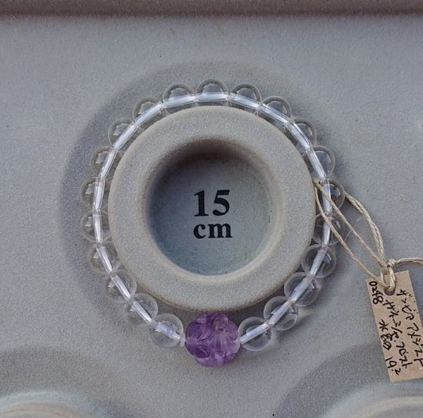 | 水晶:約8mm ガネーシャ:約14mm 水晶粒数:21 内径:約15cm 重さ:約19.2g |