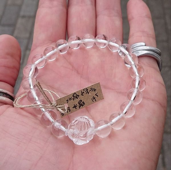 ブレスレット レディースアクセサリー アクセサリー ファッション ガネーシャ 水晶 クリア仕上げ 天然 ビーズ 手彫り 浮き彫り 天然石 【送料無料】