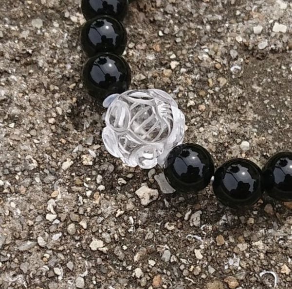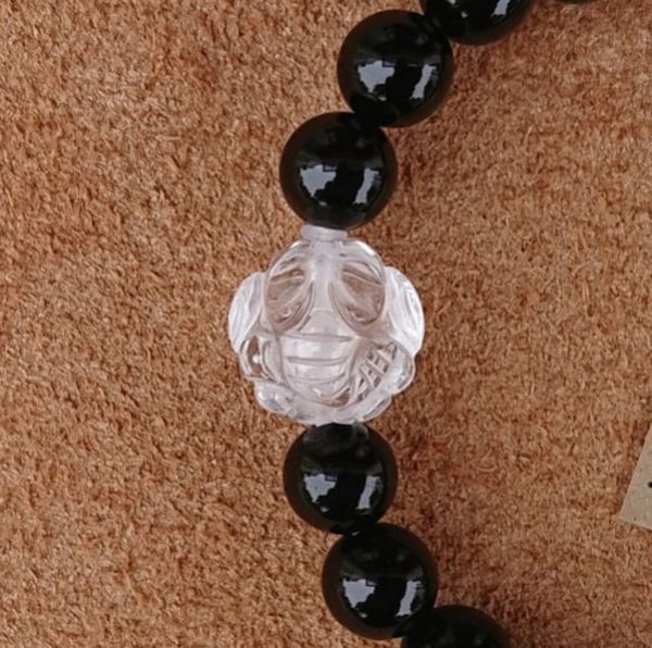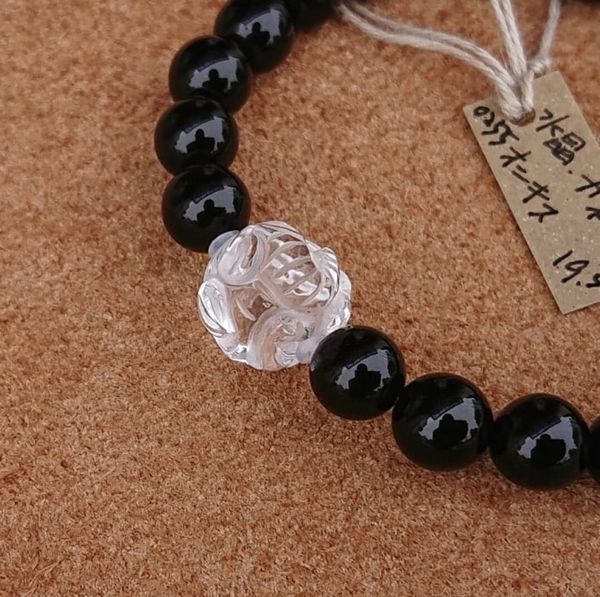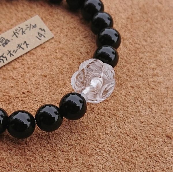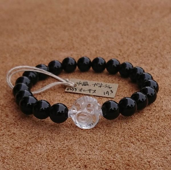ブレスレット レディースアクセサリー アクセサリー ファッション ガネーシャ 水晶 オニキス クリア仕上げ 天然 ビーズ 手彫り 浮き彫り 【送料無料】