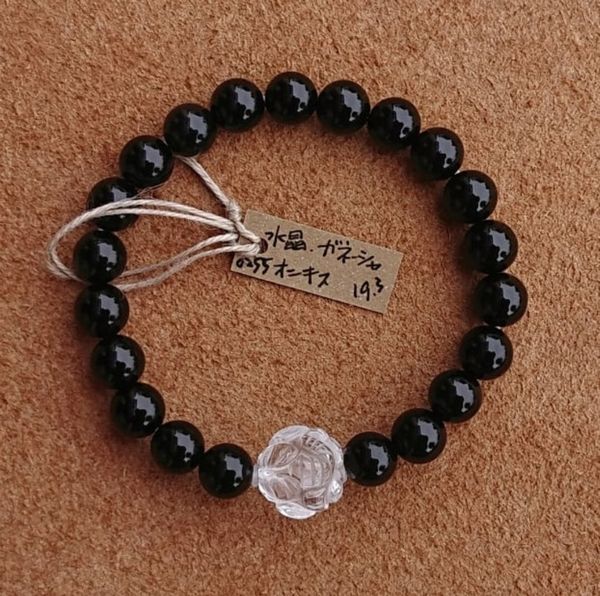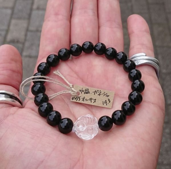 | オニキス:約8mm ガネーシャ:約14mm オニキス粒数:21 内径:約15cm 重さ:約19.3g |